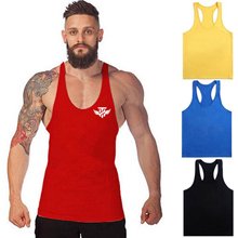 Mens Plain Gym Vest Bodybuilding Muscle Stringer Vest Back Top Training